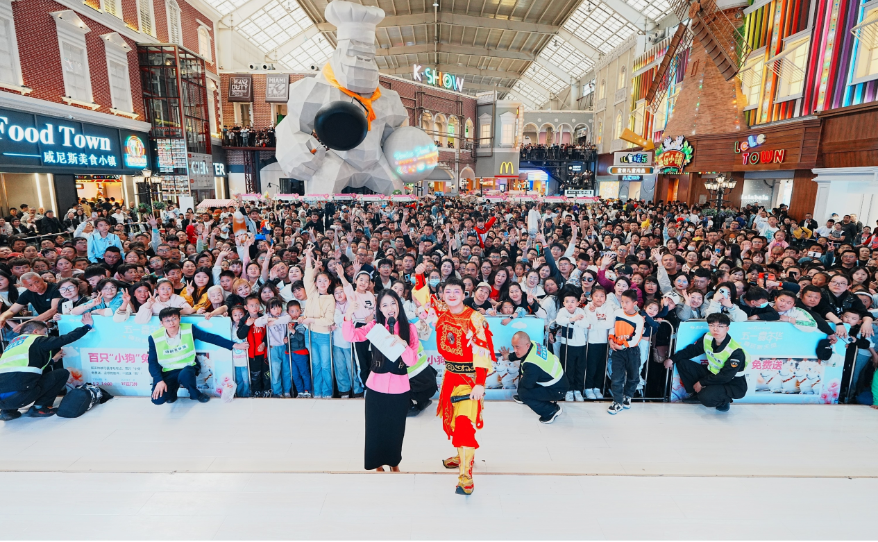 5月3日中午,“雪餅猴”準(zhǔn)時出現(xiàn)在新天地購物公園,他先來到三樓“威尼斯水城”,親自體驗(yàn)了“網(wǎng)紅”腳踏船。隨后,他耍起金箍棒與粉絲互動,“搶”到簽名照的游客,發(fā)出一聲聲尖叫。