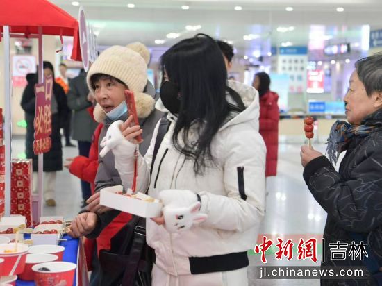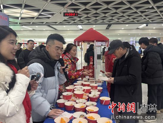 在出站口,《大東北我的家鄉(xiāng)》音樂響起,游客剛下火車便被充滿東北風情的快閃表演吸引,免費品嘗的凍柿子、凍梨、冰糖葫蘆,免費領(lǐng)取綠園文旅游玩攻略和多種購物優(yōu)惠券,讓全國各地的游客剛踏上東北的土地,就感受到的東北人的熱情。