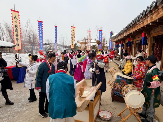 活動推出開放式沉浸式文旅體驗線路,將刀畫、松花石雕刻等非遺技藝展演融入其中,設(shè)置了冰上套圈贏年貨、簡易冰壺等6大全年齡段友好型冰雪趣味項目,同時推出殺年豬、鐵鍋燉等本土特色美食,明太魚坊、粉條坊等特色業(yè)態(tài)集中亮相,更有手磨咖啡搭配現(xiàn)烤打糕的特色休閑體驗,為游客增添新春暖意;顒赢(dāng)天邀請了100余名網(wǎng)絡(luò)達人深度探訪打卡,累計發(fā)布宣傳作品200余條,單直播間最高瀏覽量突破500萬。春節(jié)期間,活動已接待游客近3萬人次,獲得各級官方媒體及新媒體平臺重點宣推,相關(guān)內(nèi)容總播放量破千萬,實現(xiàn)線上線下流量雙向豐收。