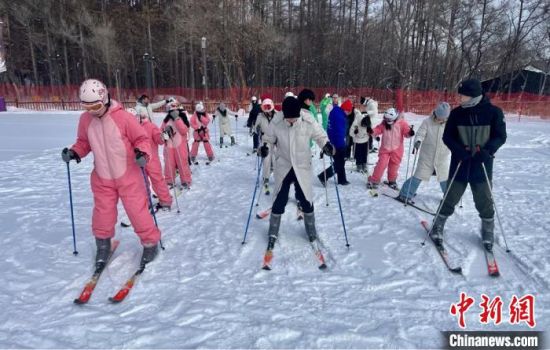研學(xué)團(tuán)成員在長(zhǎng)春凈月潭體驗(yàn)滑雪樂趣!〖质∥穆脧d供圖