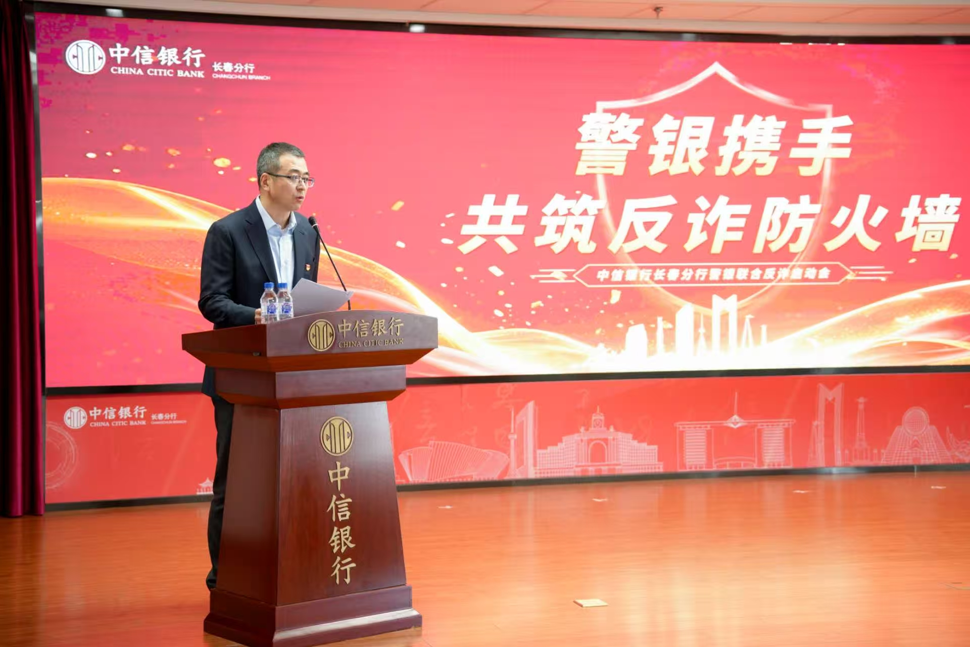 長春分行黨委書記代表中信銀行致辭:中信銀行長春分行將始終踐行“金融為民”理念,堅決履行反詐管理的主體責任。同時,積極聯(lián)合公安、監(jiān)管、社區(qū)等多方力量,在反詐宣傳、勸阻受騙群眾、打擊涉詐犯罪等方面凝聚強大合力,推動全社會共同參與反詐的大格局形成。