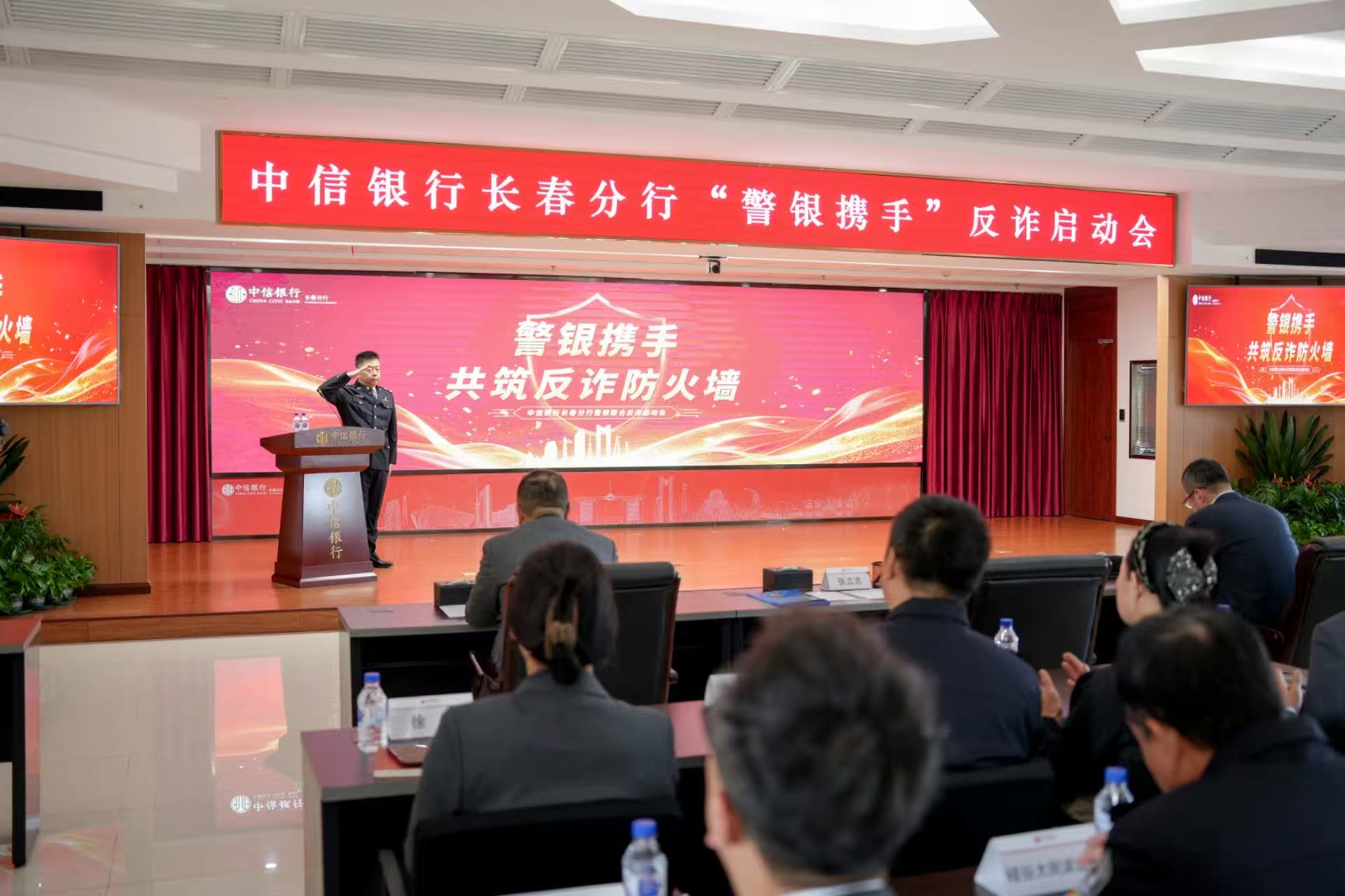 10月23日上午9時,中信銀行長春分行與長春市公安局刑偵支隊聯(lián)合舉行“警銀攜手,共筑反詐防火墻”啟動會開啟儀式。市局刑偵支隊有關(guān)領(lǐng)導及反電信網(wǎng)絡詐騙中心專家,吉林金融監(jiān)管局消保部門負責人、各區(qū)派出所民警、社區(qū)代表、老年大學相關(guān)負責人,以及中信銀行總分行相關(guān)領(lǐng)導和員工代表共同參會。