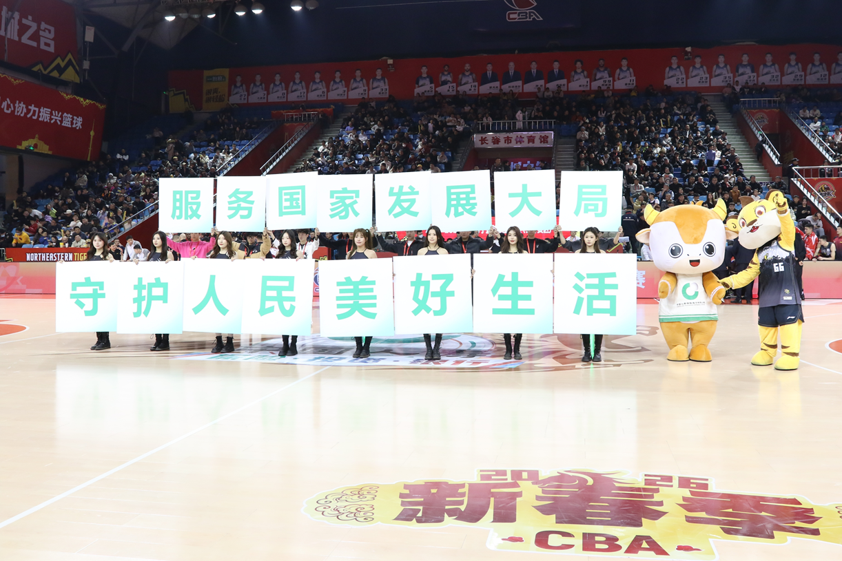賽場中央,中國人壽專屬展示環(huán)節(jié)成為節(jié)間亮點(diǎn)。主持人熱情開場:“歡迎來到由CBA聯(lián)賽官方主贊助商中國人壽帶來的互動環(huán)節(jié)。中國人壽為CBA球員助力打call!”伴隨著動感的音樂,16名啦啦隊(duì)員率先登場,在中圈帶來活力舞蹈表演,表演結(jié)束后,隊(duì)員們每人舉起一張展示牌,共同拼組出“服務(wù)國家發(fā)展大局,守護(hù)人民美好生活”的企業(yè)使命,東北虎俱樂部吉祥物與中國人壽壽險牛犇犇吉祥物攜手登場,在場內(nèi)舞動,萌趣的姿態(tài)與整齊的展示相映成趣,瞬間點(diǎn)燃現(xiàn)場的氛圍。表演落幕,“一個國壽,一生守護(hù)!感謝中國人壽為我們帶來的精彩時刻,中國人壽,相知多年,值得托付,要投就投中國人壽!”的話語響徹賽場,將品牌的守護(hù)理念傳遞給現(xiàn)場的每一位觀眾。