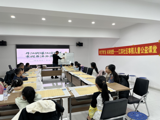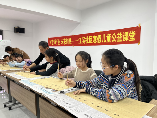 翰墨飄香潤(rùn)育童心,筆走龍蛇書寫成長(zhǎng)。江濱社區(qū)黨委以傳承中華優(yōu)秀傳統(tǒng)文化為抓手,依托書法公益課堂搭建文化傳承平臺(tái),以筆墨傳文化、以書香育新人。一是名師領(lǐng)航夯基礎(chǔ)。邀請(qǐng)轄區(qū)書法教師段老師現(xiàn)場(chǎng)授課,以專業(yè)教學(xué)助力孩子們感受書法魅力、傳承優(yōu)秀文化;二是循序漸進(jìn)長(zhǎng)才干。段老師從握筆姿勢(shì)、基本筆畫教起,聚焦楷書基礎(chǔ),通過示范指導(dǎo)、一對(duì)一糾正,幫助孩子們?cè)鷮?shí)掌握書寫技巧,培養(yǎng)持之以恒的韌勁、嚴(yán)謹(jǐn)認(rèn)真的態(tài)度、精益求精的追求;三是以書潤(rùn)心強(qiáng)自信。結(jié)合書寫春聯(lián)、福字等形式,與孩子們一同揮毫潑墨,讓孩子們?cè)诠P墨間體悟傳統(tǒng)文化的博大精深,在書寫中根植文化自信,在傳承中凝聚民族力量,推動(dòng)中華優(yōu)秀傳統(tǒng)文化在青少年中薪火相傳。
