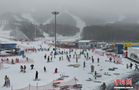 眾多滑雪愛好者來到吉林北大湖雪場(chǎng)!〖质斜┰囼(yàn)區(qū)北大湖雪場(chǎng)供圖