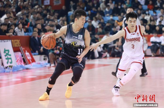 3月15日晚,吉林長春,吉林隊姜偉澤(左一)持球進攻。 中新社記者 張瑤 攝