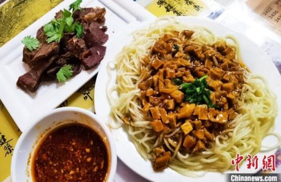 資料圖為驢肉黃面。 中新社記者 馮志軍 攝
