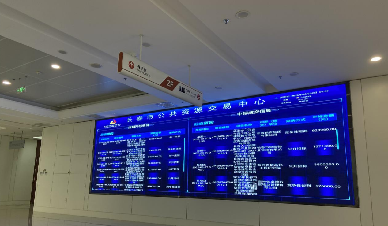 長(zhǎng)春市公共資源交易中心LED屏幕實(shí)時(shí)顯示政府采購招標(biāo)信息