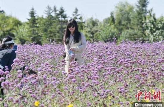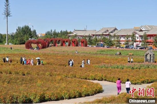 9月12日,在長春北湖花海,姹紫嫣紅的花朵在綠樹藍(lán)天的映襯下構(gòu)成了一幅美麗的秋色畫卷,吸引眾多游客前來觀賞。
