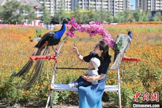 游客在花海拍照留念。張瑤 攝游客在欣賞花朵。張瑤 攝游客在花海參觀。張瑤 攝游客在花海拍照留念。張瑤 攝游客在花海和孔雀互動。張瑤 攝