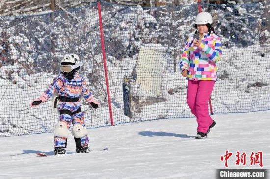 小朋友在滑雪場學習滑雪。張瑤 攝