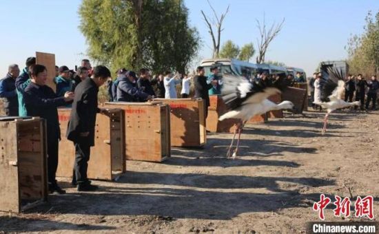 中新網(wǎng)長(zhǎng)春11月19日電 (張瑤 王萬峰)吉林省林業(yè)和草原局19日介紹,該局近日組織野生動(dòng)物救護(hù)部門將救助的11只東方白鸛成功護(hù)送到天津七里海國(guó)家濕地公園與已遷徙至那里的種群匯合。這是吉林省第一次大規(guī)?缡∽o(hù)送“鳥界國(guó)寶”東方白鸛歸隊(duì)。