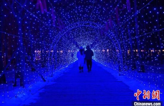 12月27日,吉林松原,數(shù)百組花燈流光溢彩,營造出濃厚的新年氛圍,吸引市民前來觀賞。