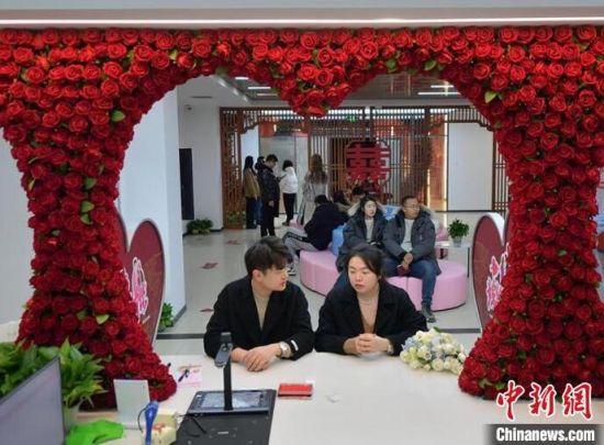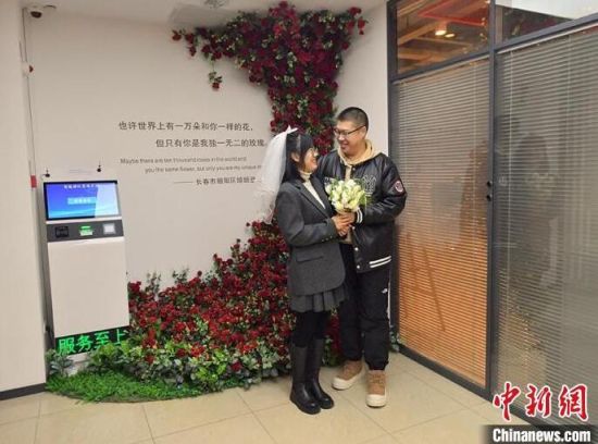 2月1日,在長(zhǎng)春市朝陽(yáng)區(qū)婚姻登記處,多對(duì)新人在辦理結(jié)婚登記。該婚姻登記處近日打造了三種不同風(fēng)格的拍攝場(chǎng)景,并為新人準(zhǔn)備了鮮花、婚紗以及特色服裝等,給前來(lái)登記結(jié)婚的新人一個(gè)大大的驚喜。