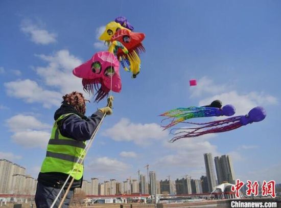 吉林長(zhǎng)春:多彩風(fēng)箏空中“飛舞”