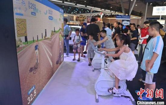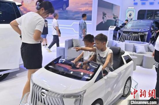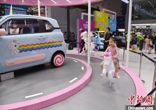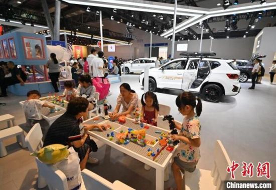 7月13日,在第21屆長春國際汽車博覽會上,小朋友在淘氣堡玩耍。本屆長春汽博會有全球124個(gè)品牌的展車亮相,現(xiàn)場設(shè)置了許多游戲體驗(yàn)項(xiàng)目,吸引小朋友們參與。 (中新社記者 張瑤/攝)