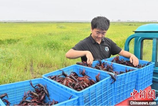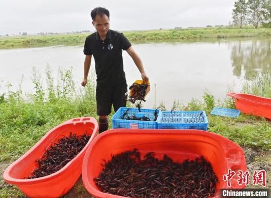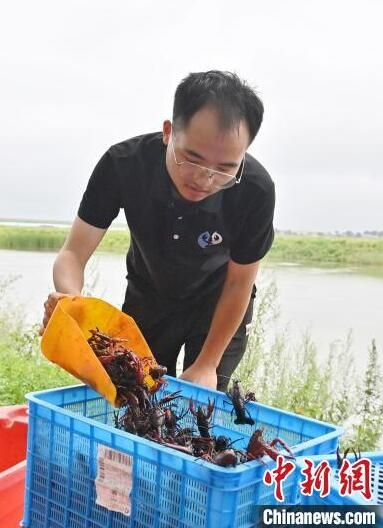 8月22日,在吉林省伊通縣三聯(lián)水庫灌區(qū)的小龍蝦苗培育基地,工作人員在展示小龍蝦。該基地科研團(tuán)隊在成功培育出了適應(yīng)北方寒地環(huán)境小龍蝦苗的同時,還創(chuàng)新探索出稻田養(yǎng)殖蝦蟹新模式,通過生態(tài)良性循環(huán)提升稻米品質(zhì),也能更好地保護(hù)和利用黑土地。中新社記者 張瑤 攝