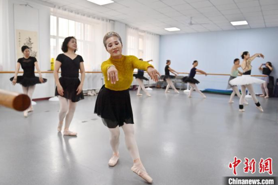 11月21日,在位于吉林長春的吉林省社區(qū)老年大學,老年人在學習芭蕾舞。這些老年人年齡最大的已有70歲,她們每周聚在一起挑戰(zhàn)“足尖上的藝術”,演繹不老芳華。中新社記者 張瑤 攝