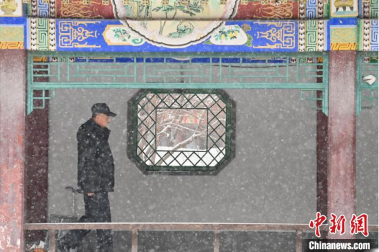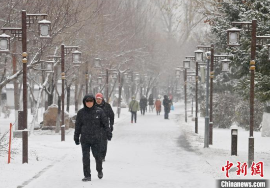 11月26日,吉林長春,市民在清掃車上的積雪。當(dāng)天,吉林長春迎來今冬首場明顯降雪天氣,整座城市披上銀裝。 中新社記者 張瑤 攝