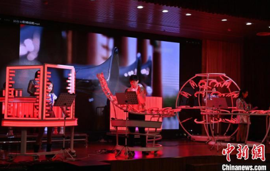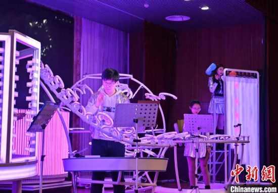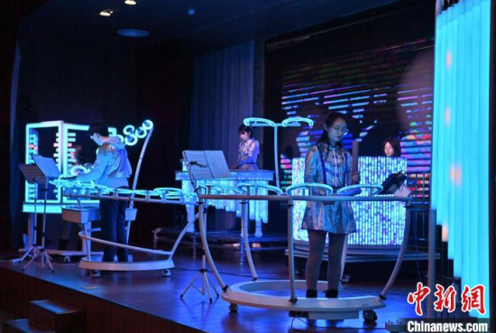 2月22日,在長春中國光學(xué)科學(xué)技術(shù)館,小朋友在體驗(yàn)光學(xué)樂器。當(dāng)天,由該館工作人員組成的OMI樂隊(duì)為觀眾獻(xiàn)上了一場精彩演出,他們利用由傳感器和其他光學(xué)元件制成的光學(xué)樂器,結(jié)合專業(yè)的電子音源,通過用手或鼓棒遮擋光束來產(chǎn)生電信號,觸發(fā)音源,發(fā)出聲音和變換顏色。這種演奏方式仿佛是通過敲擊空氣來演繹美妙的樂曲。中新社記者 張瑤 攝