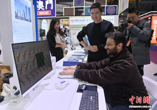 12月7日,吉林長春,參觀者體驗中醫(yī)健康評估系統(tǒng)。當日,2025長春國際醫(yī)藥健康產(chǎn)業(yè)博覽會開幕,AI智能中醫(yī)藥診療系統(tǒng)、中醫(yī)經(jīng)絡(luò)檢測儀、爬樓機器人等前沿診療與智慧生活設(shè)備,吸引了大批觀眾互動參與,感受科技賦能下傳統(tǒng)醫(yī)學與現(xiàn)代健康管理的創(chuàng)新融合!≈行律缬浾 張瑤 攝