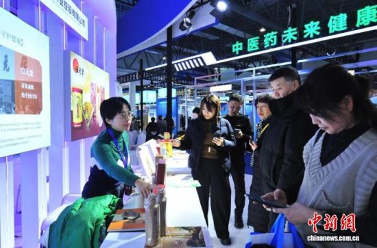 2024年12月8日,2024長春國際醫(yī)藥健康產(chǎn)業(yè)博覽會上,展商在推介商品。(資料圖) 張瑤 攝