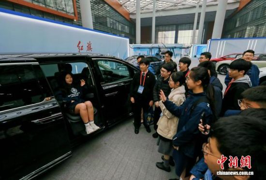 4月3日,吉林長春,香港中學生在中國一汽體驗紅旗汽車。韓俊海 攝